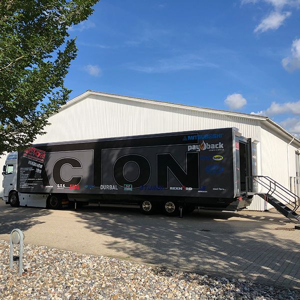 Trækkeren har monteret en 18 KVA generator, der kan forsyne udstillingstraileren med strøm.